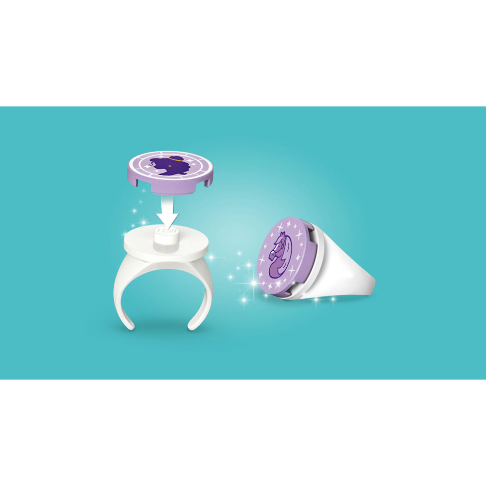Take a ride with Belle and Philippe. Build this charming LEGO Disney Princess set to help Belle take books to her friends in the marketplace. Hitch Philippe to the carriage then load the books in the back of the carriage. Sit Belle in the front and head off. Share your love of Belle and Philippe with 2 collectible rings, each with a different decoration that can be swapped out whenever you like!