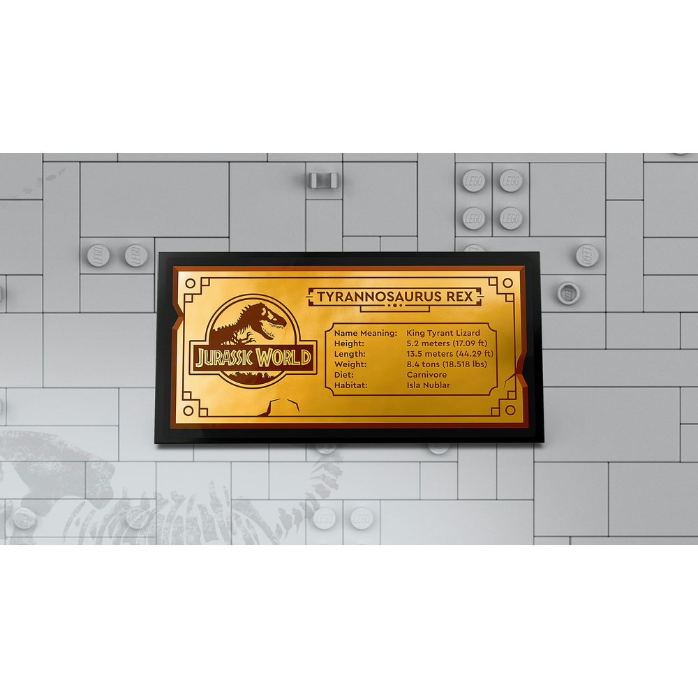 The dinosaur LEGO set features a buildable T. rex skull, footprint and stand