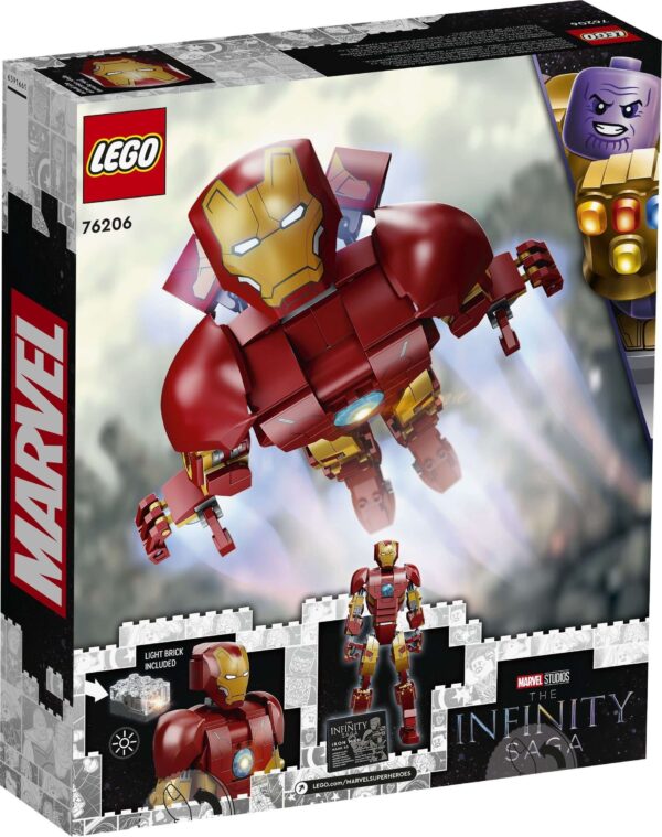 Fully jointed, buildable Iron Man! Give Iron Man fans aged 9 and up the ultimate gift: their own Iron Man . Standing over 9 in. (24 cm) tall, LEGO Marvel Iron Man Figure (76206) is a buildable, take-anywhere toy that brings Marvel-movie authenticity to kids’ action-packed adventures. Based on Iron Man from Marvel Studios’ Avengers: Age of Ultron, this realistic recreation is fully jointed, so kids can move and position the LEGO Marvel figure as they battle their way through exciting missions. A button-operated Light Brick adds extra realism as it illuminates the arc reactor in Iron Man’s chest. When not saving the universe, the Iron Man model looks great on display and includes a removable information plate with details about the iconic armored Avenger. The free LEGO Building Instructions app contains an additional digital guide that kids can use to zoom, rotate and visualize their model. There’s also a guided, real-life, building process that allows young builders to construct with confidence.