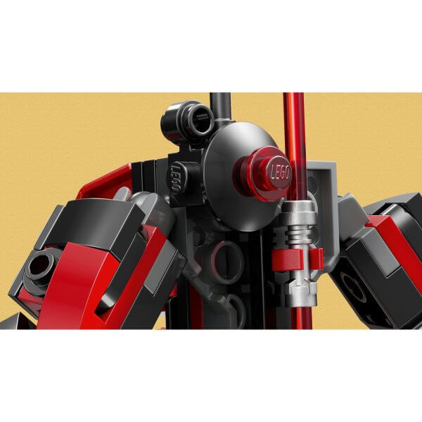 Unleash the dark side of the Force with the Darth Maul Mech! Attach his double-bladed Lightsaber to the back of the mech. Open the cockpit and place the Sith Lord inside. Adjust the mech’s arms and legs for powerful battle poses. Release the Probe Droid to check out enemy positions, then attack with the mech’s huge double-bladed Lightsaber!