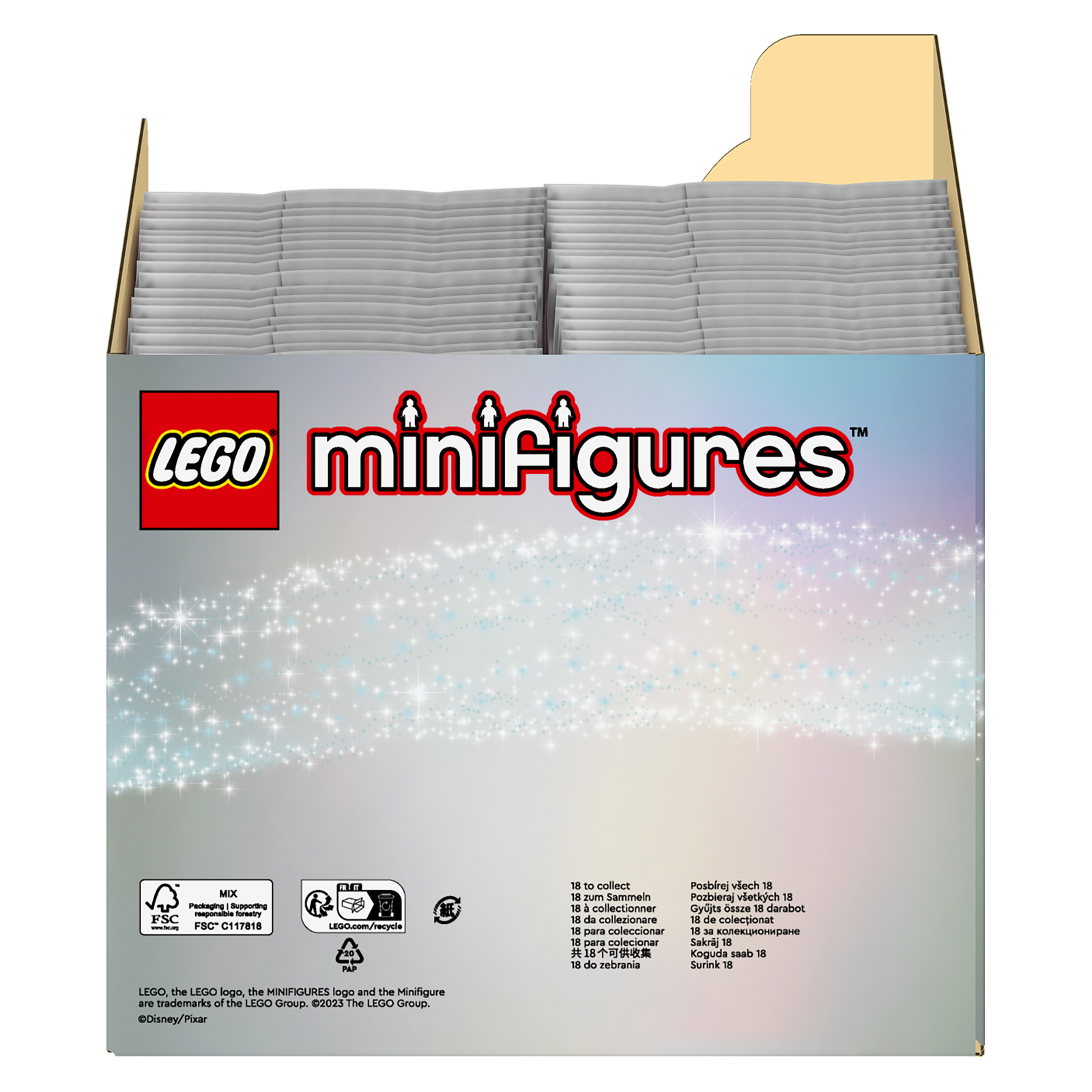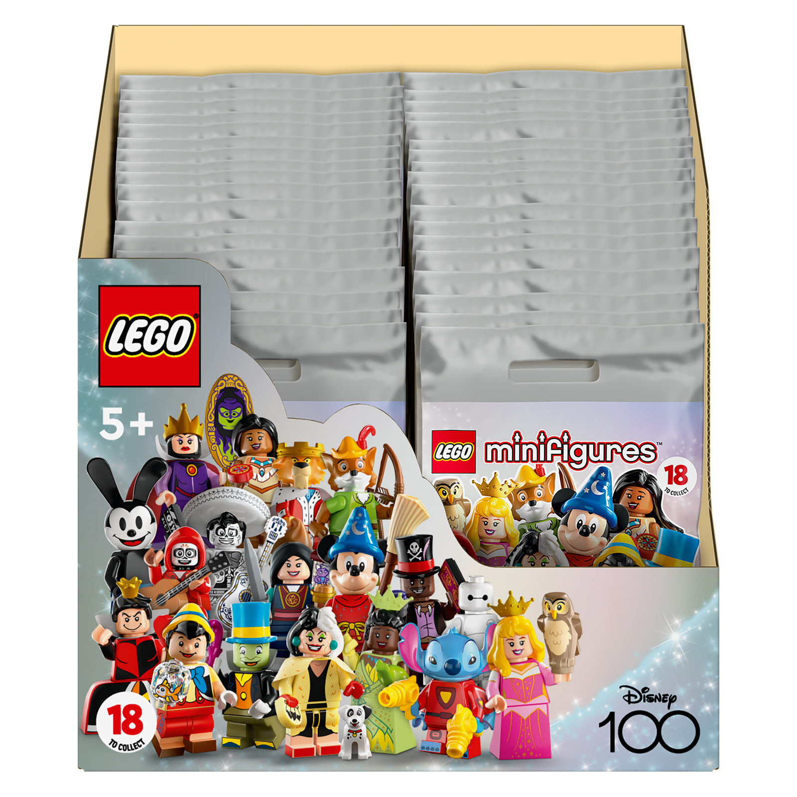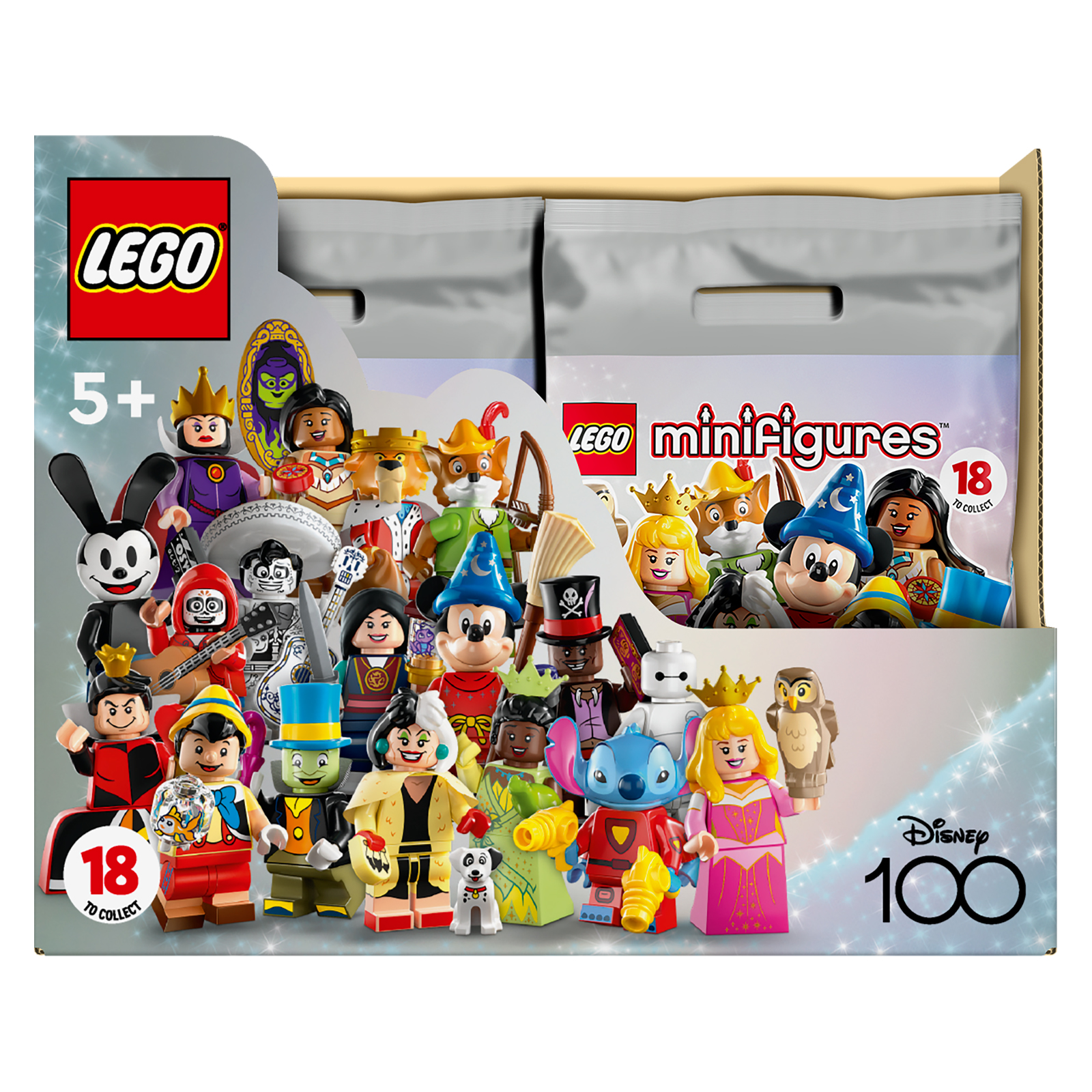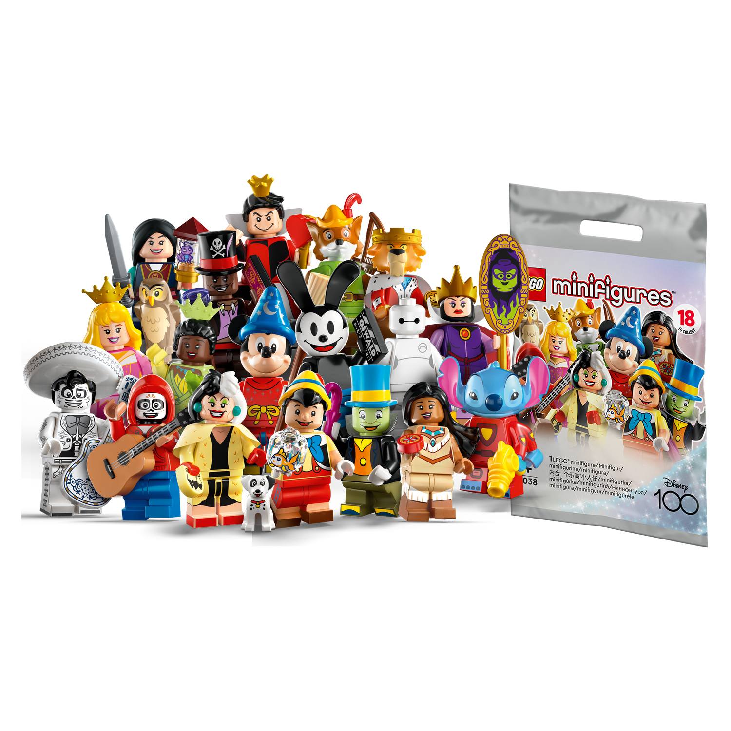 - Surprise characters – Kids can celebrate the magical world of Disney with these LEGO® Minifigures Disney 100 (71038) characters. There is an unexpected minifigure in every blind bag