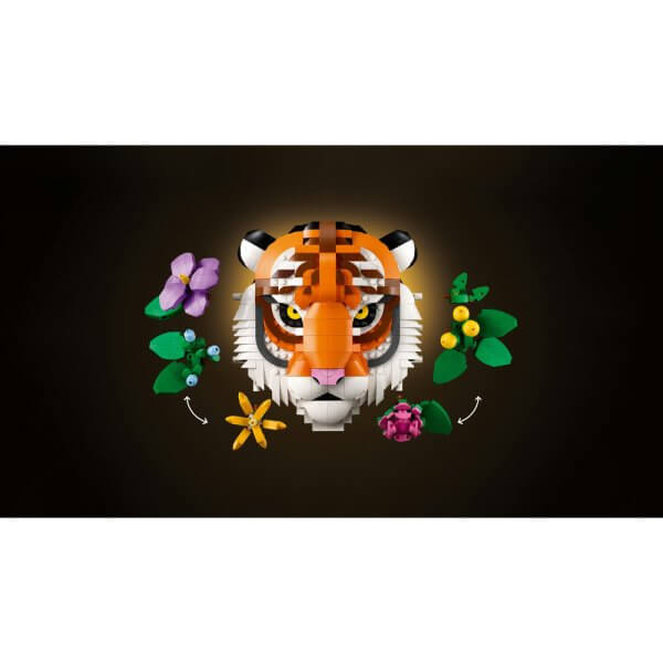 This wildlife decor depicts a beautiful tiger peeking through a collection of decorative flowers and plants. You can hang it on your wall or use its built-in stand to display on a table or shelf. The flowers are all customisable and can be moved into different positions, or you can add other brick-built flowers from some of the sets (sold separately) in the LEGO Botanicals collection.