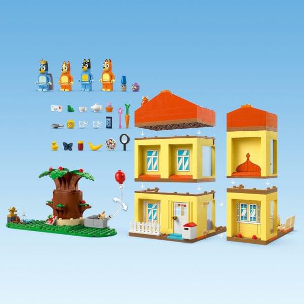 The build-and-play Bluey’s Family House is an interactive home model kit for kids aged 4 and over featuring Bluey, Bingo, Chilli and Bandit minifigures.