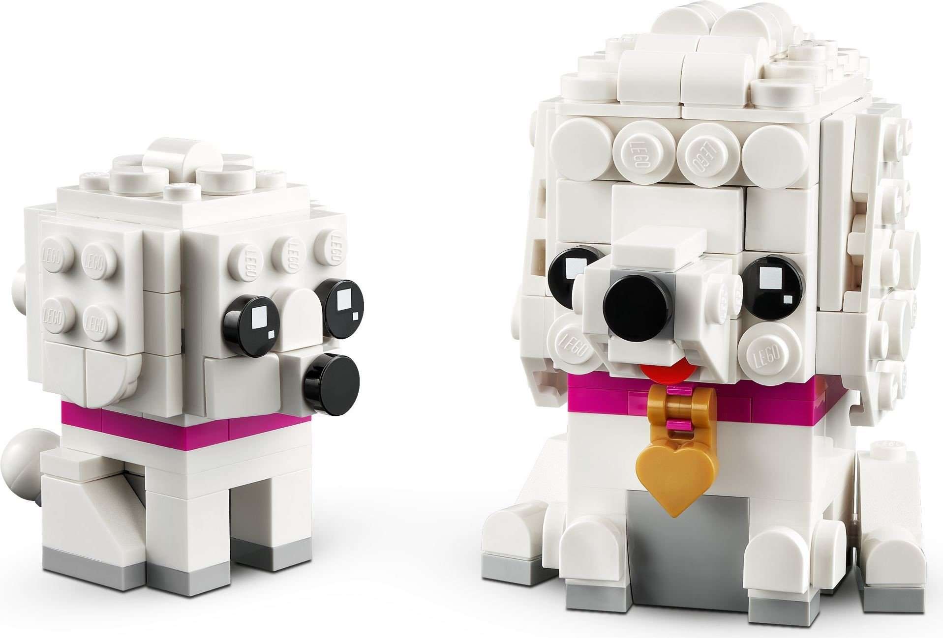 Doggy duo for BrickHeadz fans! Delight pooch-loving kids with this build-and-display LEGO BrickHeadz Poodle (40546) model. The dogs sport pink collars, with the parent poodle wearing a heart-shaped tag for extra cuteness. They sit on a sturdy baseplate next to a charming, old-fashioned streetlamp. This buildable pet set is a great gift for kids aged 8+, BrickHeadz collectors and anyone who loves dogs. Model stands over 3 in. (8 cm) high, 4 in. (12 cm) wide and 2 in. (7 cm) deep and makes a colorful addition to any desk