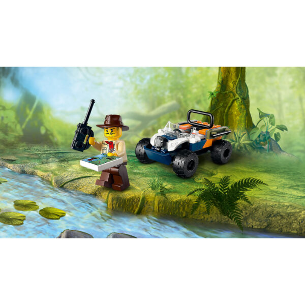 Grab your map, walkie-talkie and camera, jump behind the wheel of the ATV and set off on a mission to find the wild red panda. Join the explorer on epic jungle adventures aboard the tough ATV with its cool design and rugged tyres for handling jungle terrain. Dive into a world of jungle wildlife stories with LEGO City!
