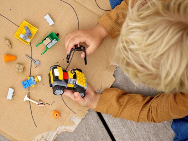 Here’s a fun treat to get kids’ imaginations working! This LEGO City Roadwork Truck (60284) toy features a front-end loader with a tipping bucket, a wheelbarrow, traffic cones, roadworks sign and a shovel. Just add the included LEGO City road worker minifigure and rat figure for hours of imaginative play. This 4+ toy construction set includes an easy-to-follow building guide and a Starter Brick element – a partly constructed base from which to start building. And with the free LEGO Building Instructions app for smartphones and tablets, kids also get Instructions PLUS – an interactive construction guide with amazing zoom and rotate viewing tools that make LEGO building child’s play. LEGO City Great Vehicles playsets deliver feature-rich, land, air and water toys that spark the imagination. Kids get to explore classic vehicles and create stories and scenarios that depict real life in a fun, imaginative way.