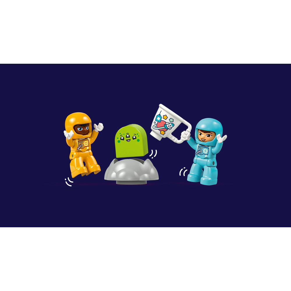 This space toy is packed with fun accessories to spark creative play. Preschool kids explore new horizons as they invent fun outer-space adventures for the 2 LEGO DUPLO astronaut figures, such as making friends with an alien or going on a space walk to mend the rocket with their toy wrench.