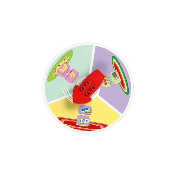 Parents hide bricks and Bluey figures behind the windows of the house, then toddlers spin the wheel to discover which pieces they need to find. They use their fine motor skills to open the toy windows and deploy their comparing, matching and communication skills to work out if they’ve found a match. Then they use their memory skills to remember where other items are hiding so they can return to them to make a match. Contains 83 pieces.