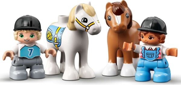 Playful learning at the pony stable! LEGO DUPLO Town Horse Stable and Pony Care (10951) has everything a little animal lover needs to care for 2 adorable ponies. The imaginative fun and playful learning will never end.Play-and-learn pony stableIt’s always a fun-packed play-day at the pony stable. The 2 cute ponies need feeding before being taken out for a ride. Then they’ll want to have a drink and be brushed. Don’t forget to prepare a cozy place for them to sleep. As they take care of the ponies in the iconic stable, little animal lovers boost their preschool development, particularly fine motor skills and social and emotional awareness.Hands-on educational toys for toddlersLEGO DUPLO toys put open-ended fun, self-expression and joyful learning into preschoolers’ hands. With DUPLO playsets, parents and young children can share precious developmental milestones as they play together.