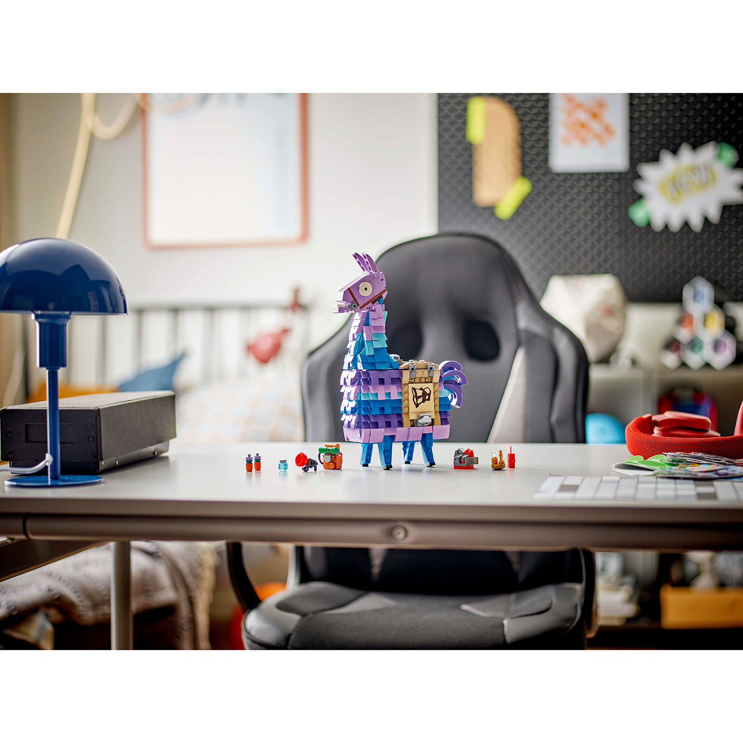 Fortnite play-and-display model – Once kids have built and played with the Fortnite toy, it becomes a piece of LEGO decor that they can showcase proudly in their bedrooms or gaming rooms