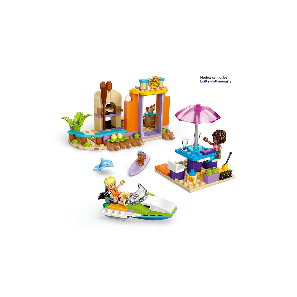 LEGO building set with 3 models that rebuild to create an alternative scene, plus 2 minidolls, dog and dolphin figures and a customisable suitcase.