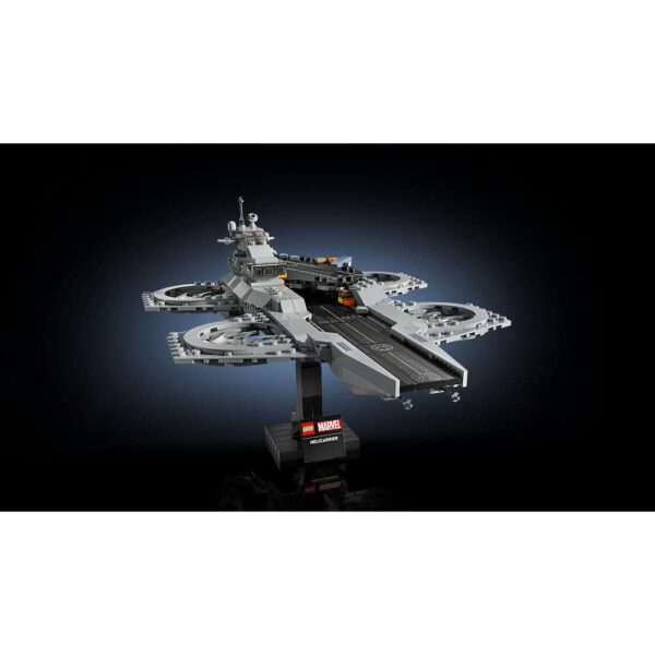 This buildable Super Hero set for adult enthusiasts replicates the Marvel aircraft carrier in awe-inspiring detail. Quinjets are visible on the runway, indicating the functional use of this Avengers aircraft. The immersive and rewarding building experience is complemented by a digital version of the set’s building instructions, which can be found on the LEGO Builder app.