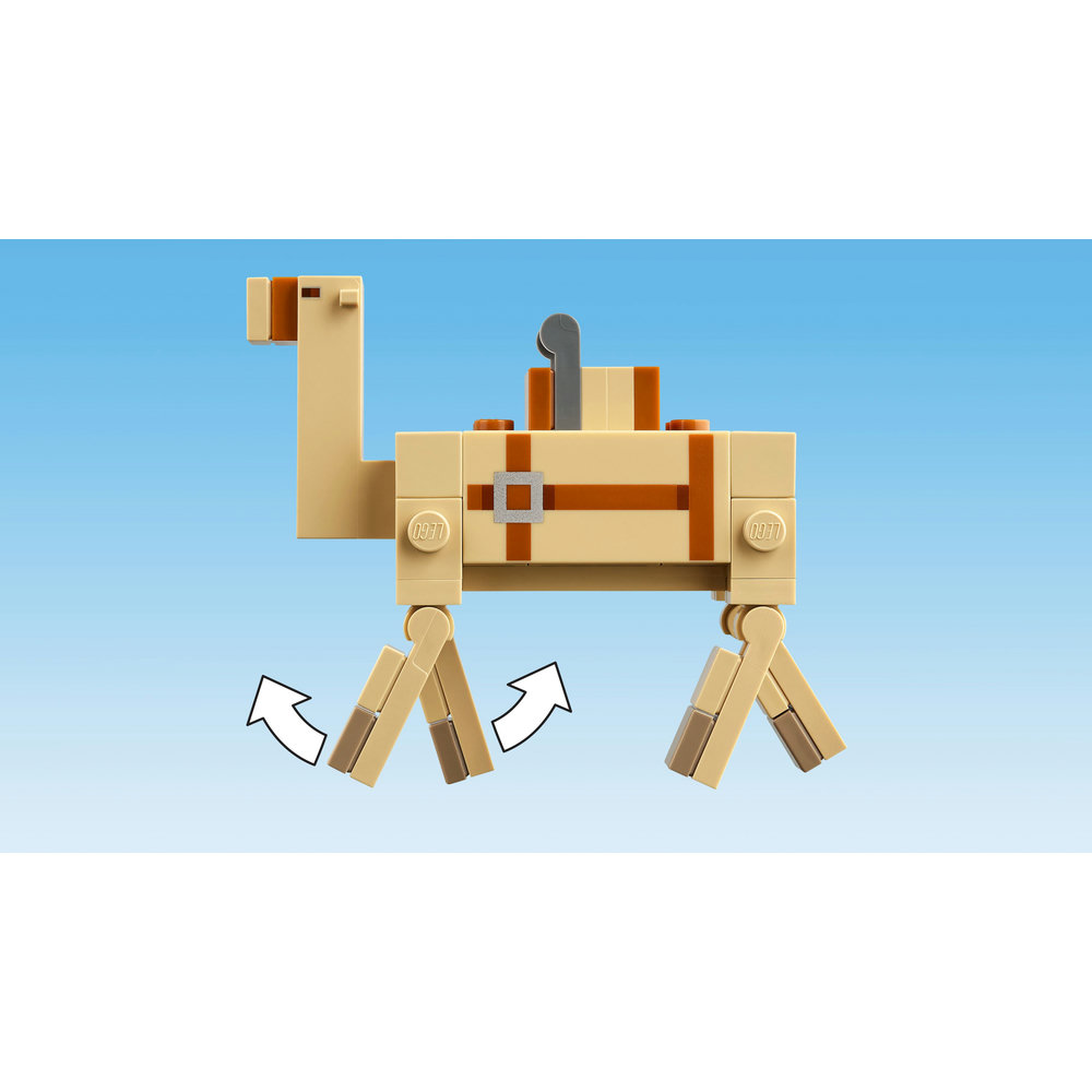 Board the ship with 2 LEGO Minecraft pirates and set sail for adventure in the Desert biome. What’s that lurking in the water? It’s a squid! Head for dry land, where you can consult the map, saddle up the camel and take a ride to your next epic Minecraft adventure.