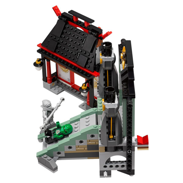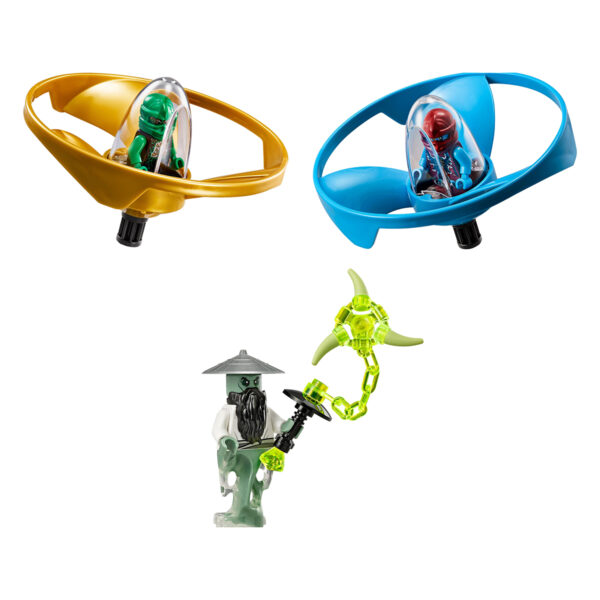 The set features a highly detailed Airjitzu Temple which serves as the battleground for the ninja warriors. The temple is equipped with a rotating tower, hidden disc shooters, and removable prison cells. It also comes with a hot air balloon and a dragon-shaped flyer that can be launched into the air, adding an exciting element to the battle.