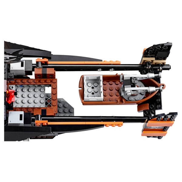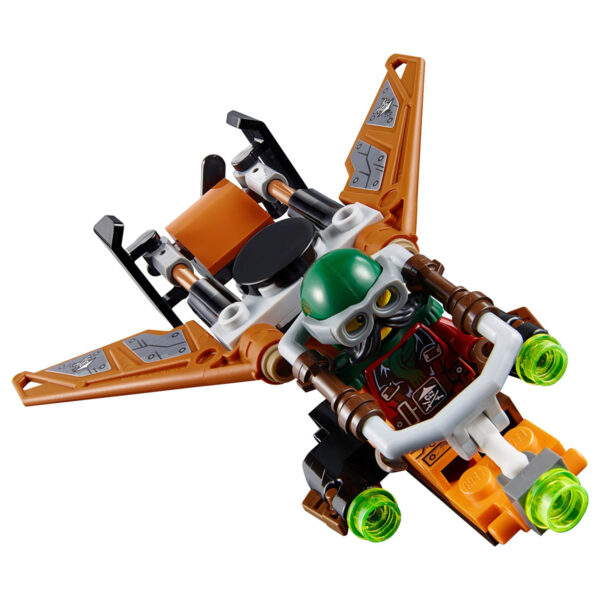 nStage a sky pirates vs. Ninja battle with Misfortune’s Keep, featuring rotating engines for launch and flight modes, fold-out cannons and disc shooters, plus a pirate jet and launchpad. Ninja Lloyd has a booster jet featuring a winch to lower Jay into battle for the golden Djinn Blade with ‘trapped Wu’ element. Includes 6 minifigures: Jay, Lloyd, Kai, Bucko, Nadakhan and Flintlocke, plus Monkey Wretch.