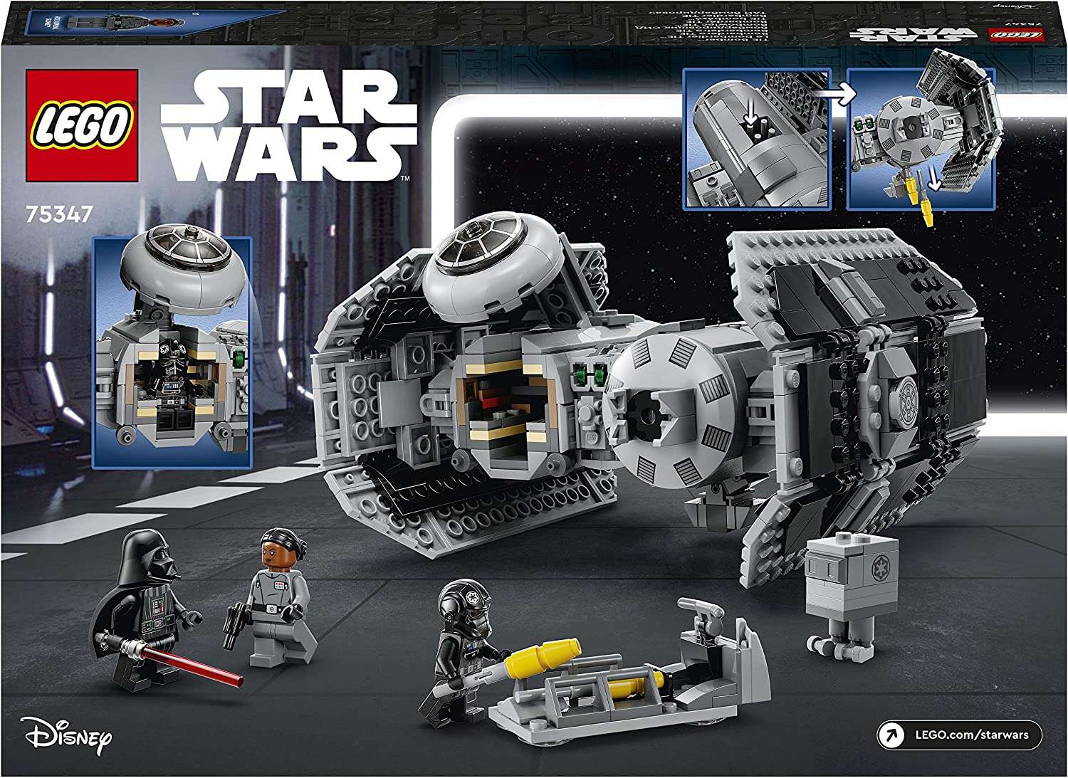 This LEGO Star Wars set brings the formidable TIE Bomber to life in brick form. The bomber’s distinctive dual-hull design is expertly captured, along with its menacing dark gray colour scheme. The build process is enjoyable, offering some clever techniques to achieve the bomber’s unique shape and functional features. The bomb drop mechanism is particularly satisfying, allowing for exciting play scenarios. The minifigure selection is a highlight, featuring a standard TIE Pilot, the rarely-seen Vice Admiral Sloane, and an updated version of Darth Vader. This combination allows for a range of Imperial-themed play and display options.