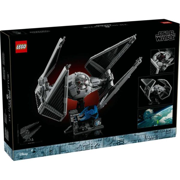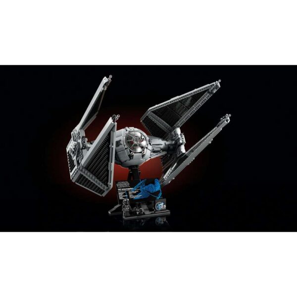 This collectible brick-built vehicle measures over 40 cm (16 in.) long and has a display stand with an information plaque, a LEGO Star Wars 25th anniversary brick and space for the included TIE Pilot LEGO minifigure and LEGO mouse droid figure.
