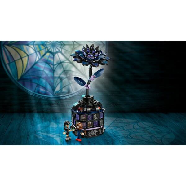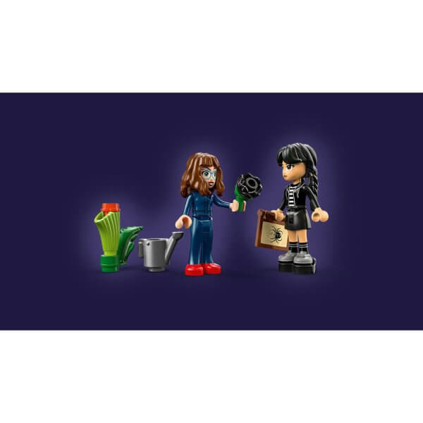 Show off Wednesday’s favourite flower. Build the gothic-style vase and black dahlia, then open the vase to explore the conservatory, which is set up for botany class. Relive favourite scenes from the TV series or create new stories with Wednesday and Professor Thornhill. Move the furniture, have a lesson or feed the worm to the carnivorous plant, then lock the vase and set the dahlia on display.
